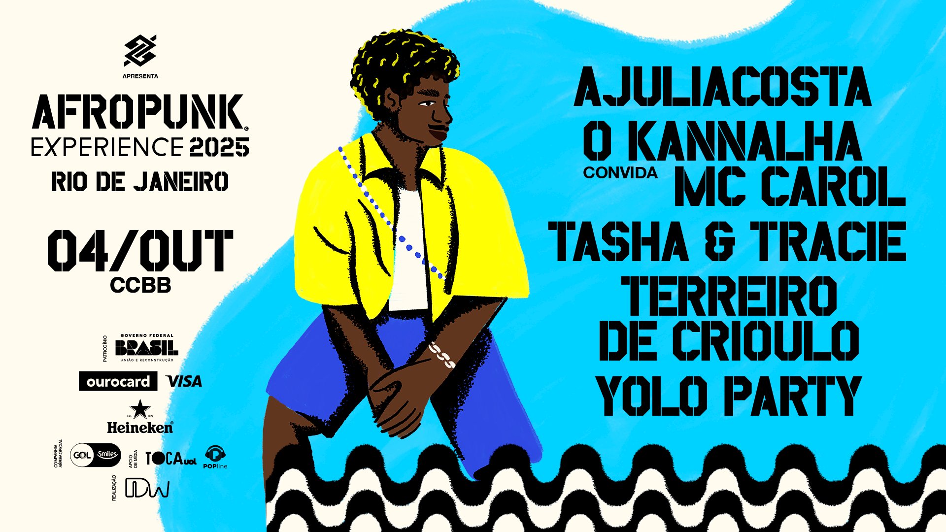 Depois de passar por Salvador, Belém e São Paulo, o festival aterrissa na capital fluminense com shows de AJULIACOSTA, O Kannalha, MC Carol, Tasha & Tracie, além da festa de 13 anos do Terreiro de Crioulo e a Yolo Party, embalada pelos DJs Tamy, Will e Jimmy.