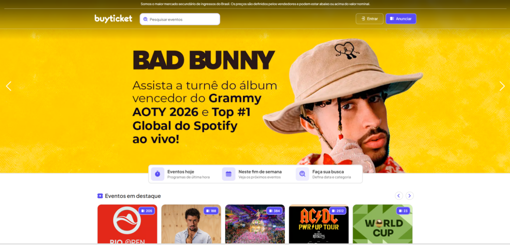 “A passagem do Bad Bunny pelo Brasil mostra a força dos grandes eventos internacionais e o quanto o público brasileiro está disposto a viver essas experiências ao vivo. Quando os ingressos se esgotam rapidamente nos canais oficiais, nosso papel é garantir que os fãs encontrem uma alternativa segura, com entradas verificadas e um processo de compra seguro. Trabalhamos para que a emoção do show comece já na aquisição do ingresso, sem riscos ou inseguranças.” Angelo Bimbato, CEO e fundador da BuyTicket, reforça o compromisso da plataforma.