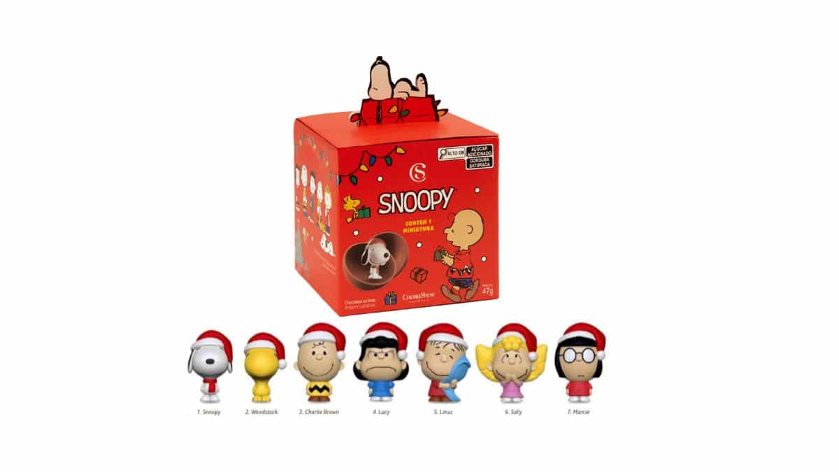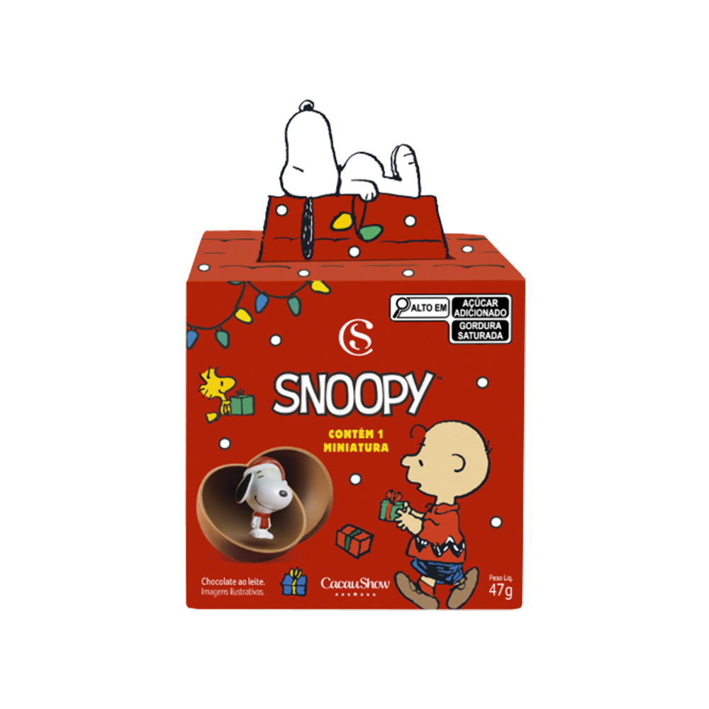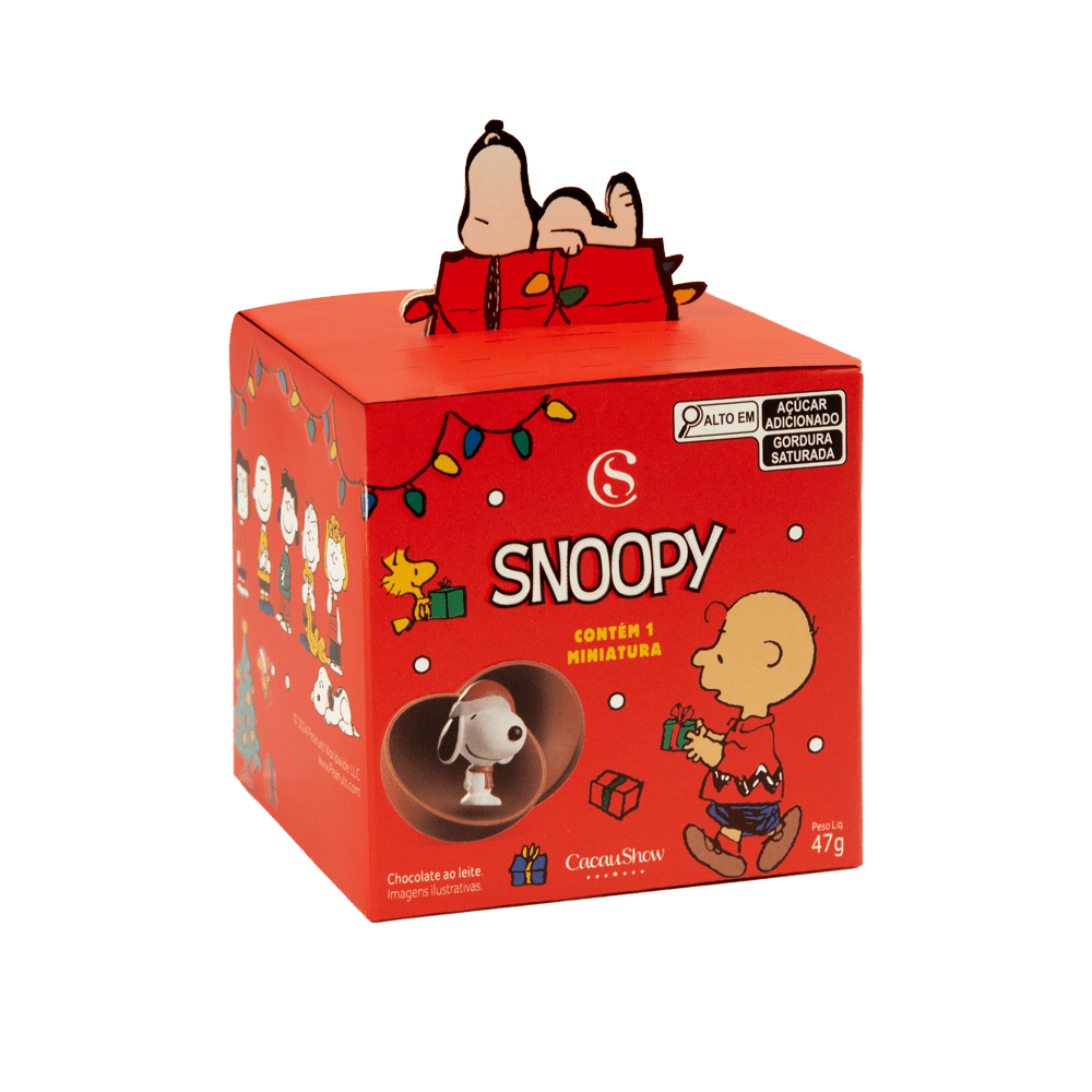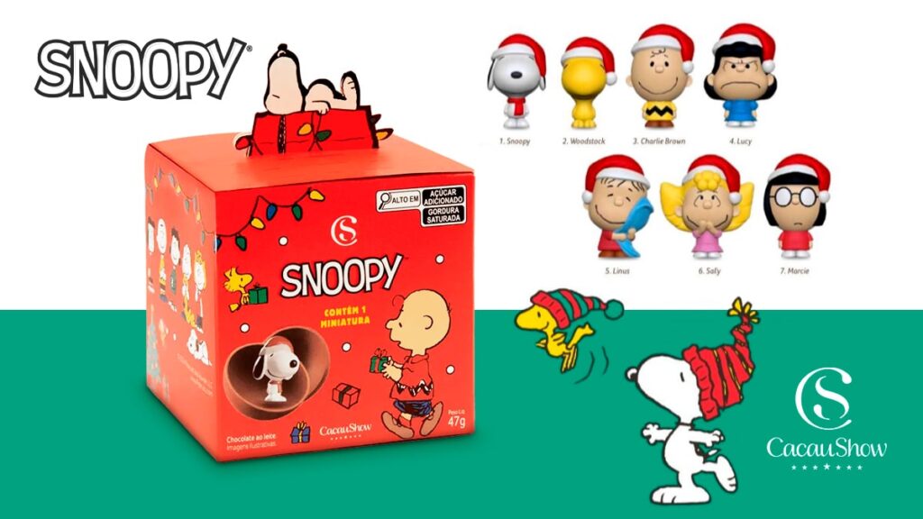 Cada caixa contém uma deliciosa esfera de chocolate ao leite da Cacau Show, junto com miniaturas colecionáveis de 7 personagens icônicos do desenho, incluindo Charlie Brown, Snoopy, Lucy, Linus, Sally, Woodstock e Marcie. Uma verdadeira viagem ao mundo de Snoopy!