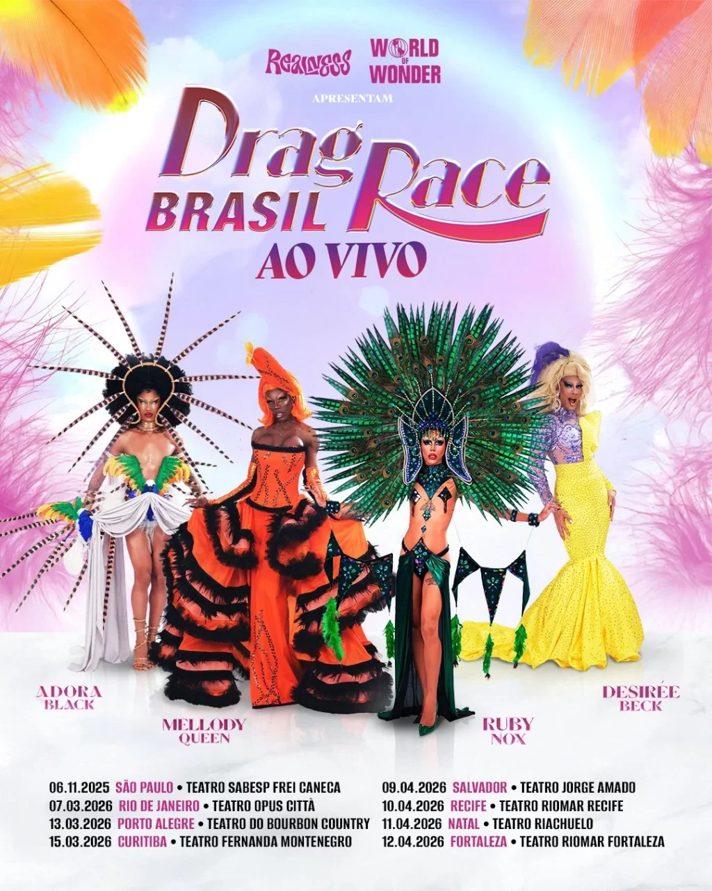 A turnê “Drag Race Brasil – Ao Vivo” é uma produção da World of Wonder (WOW), a produtora global vencedora do Emmy e criadora da franquia “RuPaul’s Drag Race”, em parceria com a Realness, considerada a maior produtora de eventos drag da América Latina.