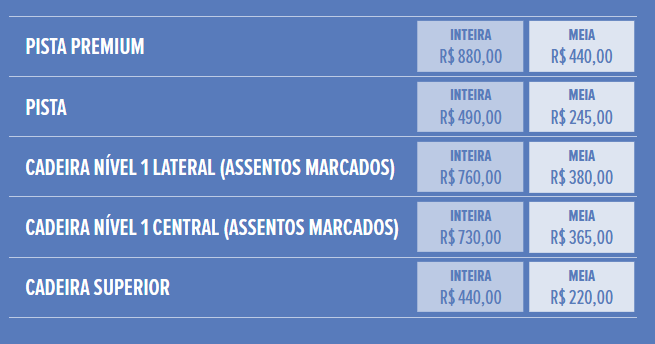 Veja os valores dos ingressos