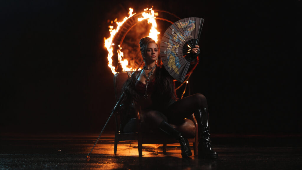 Os símbolos orientais carregam uma energia ancestral, e eu quis explorar isso no meu projeto. As máscaras japonesas, por exemplo, representam as faces e camadas que usamos para nos proteger, enquanto as espadas simbolizam a luta interna entre a sedução e a necessidade de libertação. Eu quis trazer esses elementos para refletir essa batalha interna de uma maneira visualmente marcante e quase ritualística, criando um universo místico.