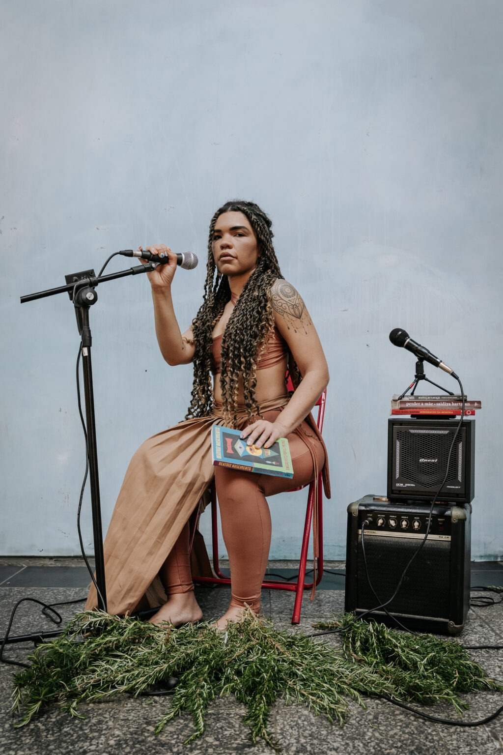 No sábado, às 19h30, Natasha Pasquini apresenta “Zumbidos de Ayo”, uma performance literária multissensorial sobre a inscrição da alegria em corpos negros como força estética, política e relacional. Com música de Rach Araújo e direção de Maurício Lima, a obra transforma a palavra em corpo e pulsação, resgata memórias de prazer e alegria e ecoa vozes como as de Lélia Gonzalez e Conceição Evaristo. Pasquini, que é artista, psicóloga, pesquisadora e Mestranda em Artes da Cena (UFRJ), utiliza a coreoescrita para investigar poéticas de bem-viver a partir de rastros contracoloniais, o que oferece um encontro poético e potente ao público. “Nessa performance, desejo me aproximar de outros (e novos) imaginários sobre mulheridades negras, fazendo reverberar frequências de alegria, muitas vezes inaudíveis, que afirmam a(s) existência(s) negra(s) em fuga e deslocamento das violentas narrativas coloniais de dor e sofrimento”, diz Natasha.