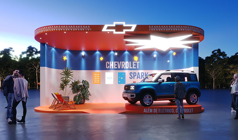 A Chevrolet apresenta ao público o Spark, seu novo SUV 100% elétrico, com uma ativação imersiva cheia de cores, interatividade e até espaço de recarga para celulares. A proposta traduz perfeitamente o espírito jovem e vibrante da marca, que se alinha ao clima do festival.