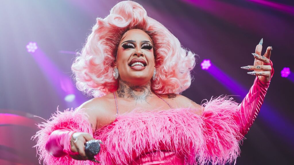 Com performances de clássicos do pagode e versões inusitadas de sucessos do pop, como “Não Dá Pra Resistir” do grupo Rouge, a drag prova sua habilidade de transitar entre estilos e se conectar com diferentes públicos. A faixa “Nosso Primeiro Beijo”, um dos maiores sucessos do novo projeto, foi um dos momentos mais celebrados da noite, com os fãs cantando em uníssono e enchendo o Espaço Unimed de emoção.