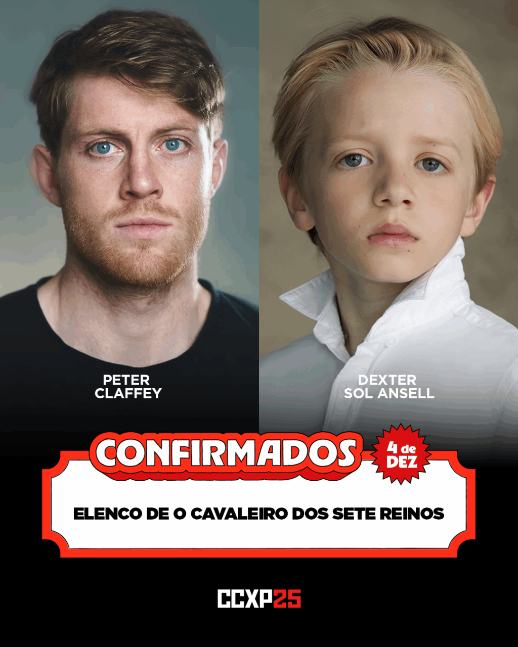Westeros está chegando com espada, escudeiro e dois atores prontos para atiçar cada fã de George R. R. Martin na CCXP 2025. A HBO Max confirmou que O Cavaleiro dos Sete Reinos, a nova produção do universo Guerra dos Tronos, vai dominar o Palco Thunder no dia 4 de dezembro, com direito à presença estrelada de Peter Claffey e Dexter Sol Ansell.