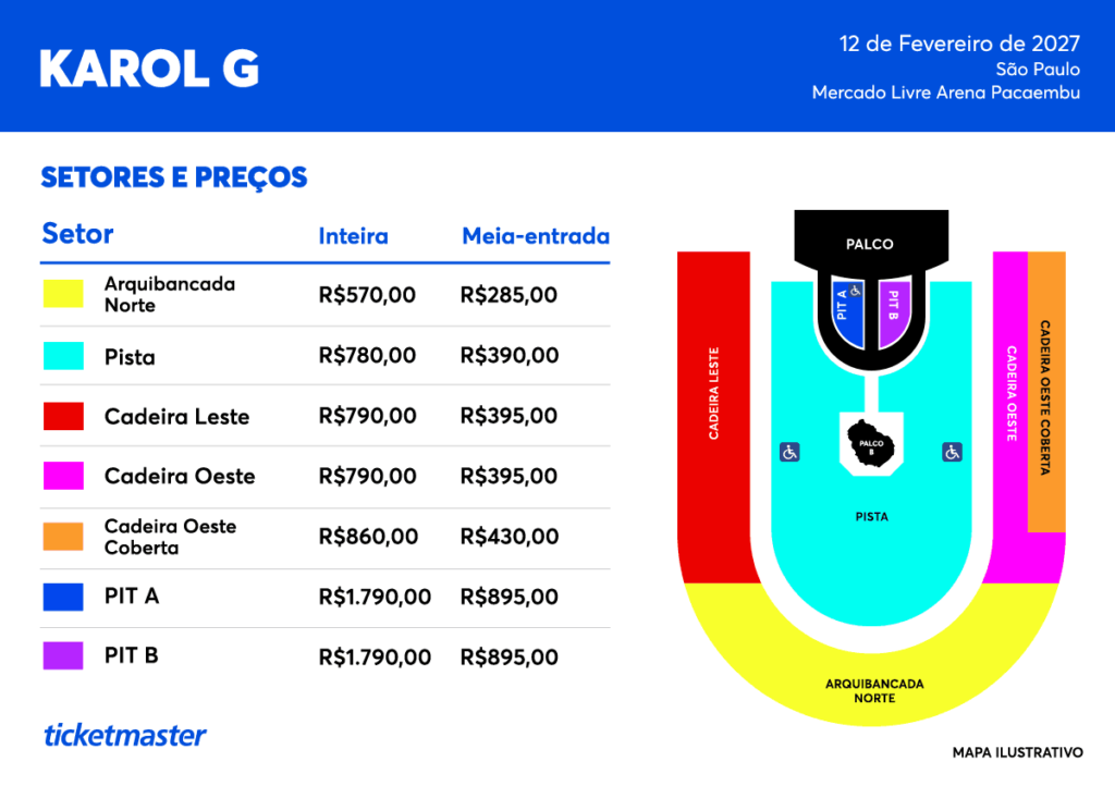 - PIT B: R$1.790,00 (inteira) | R$895,00 (meia)