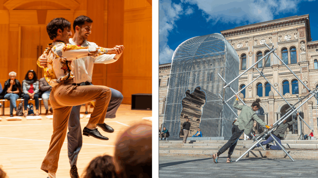 No domingo, dia 16, às 15h30, Brasil e Suécia se encontram em “Moving Landscapes”, da premiada companhia QUARTO, formada por Leandro Zapalla e por Anna af Sillén de Mesquita. A peça é uma instalação performativa e site-specific que investiga a relação entre corpos, território e ecologia. O ato utiliza um cubo metálico e plástico, e cria coreografias que exploram o vazio e o espaço habitável. A obra dialoga com o Construtivismo Russo e a estética de Hélio Oiticica, vendo o cubo como uma arquitetura comunitária, transitória e em constante reinvenção, inspirada pela lógica das favelas.