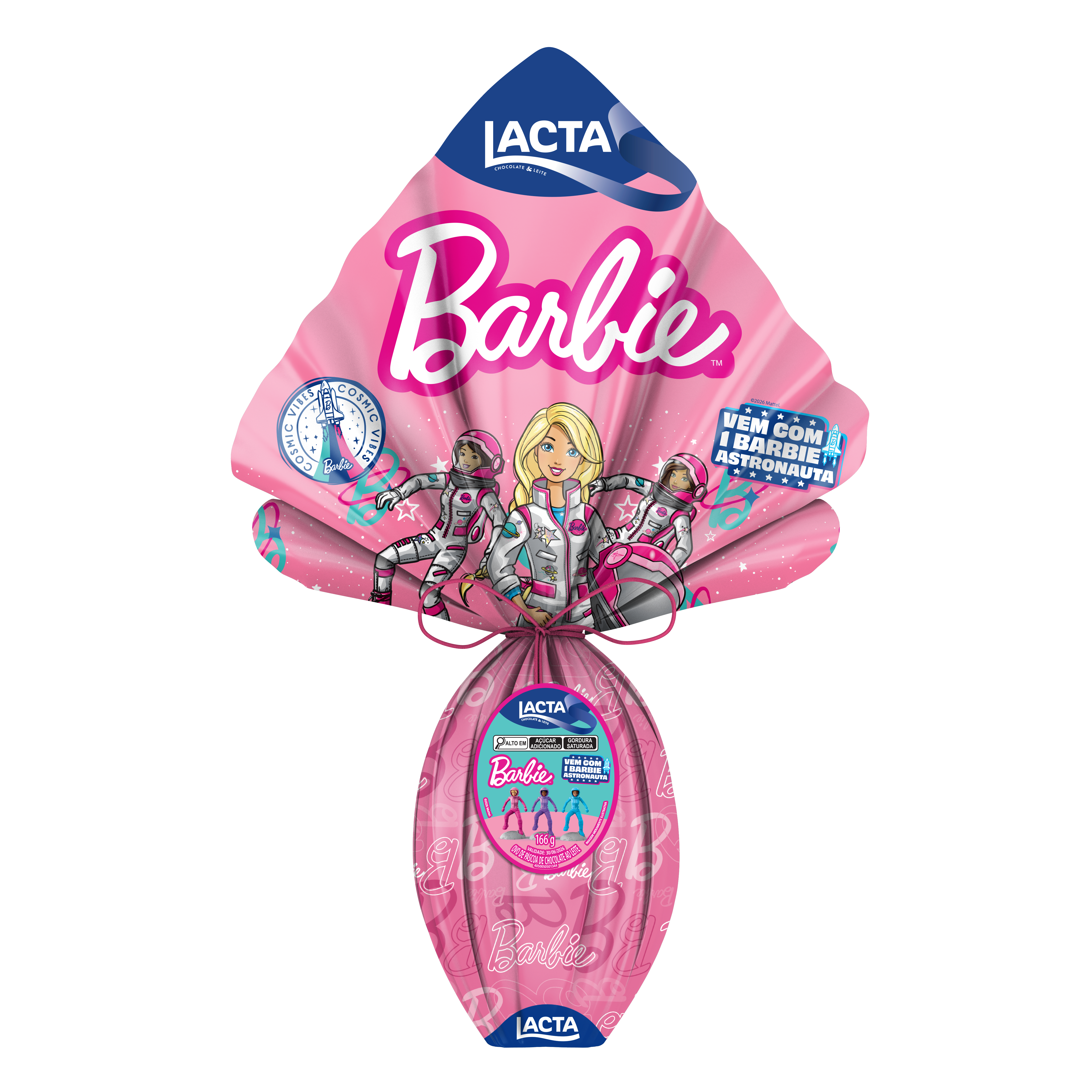 A Lacta também reafirma sua presença familiar com ovos temáticos licenciados, como os ovos Barbie, incluindo a versão Barbie Astronauta com três modelos sortidos de boneca, e os ovos Hot Wheels, que trazem o carro Dragão Bate Asas e adesivos, unindo chocolate e diversão para a criançada.