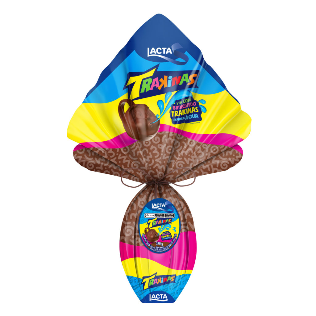 Para os que buscam nostalgia e diversão, o Ovo de Páscoa Trakinas retorna, combinando o cremoso chocolate Lacta com pedaços crocantes de biscoito na casca e acompanhando um exclusivo brinquedo Trakinas que espirra água, garantindo momentos de alegria para todas as idades.
