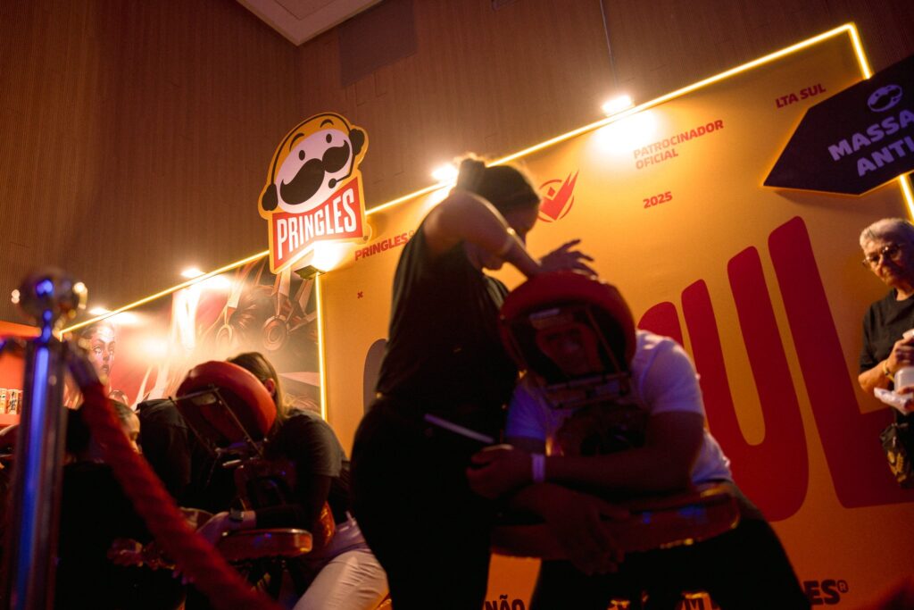 Entre as diversas atividades, a Pringles se destacou com uma iniciativa criativa, unindo bem-estar, novidade e uma conexão direta com o público gamer. A marca, já conhecida como o snack oficial da LTA Sul, inovou ao criar um espaço de wellness que oferecia a disputada “massagem anti-tilt”. A técnica, aplicada por massoterapeutas, focava em aliviar a tensão acumulada em pontos cruciais durante longas sessões de jogo, como punhos, mãos, mandíbula e pescoço, tornando-se uma das atrações mais procuradas da Fan Fest.