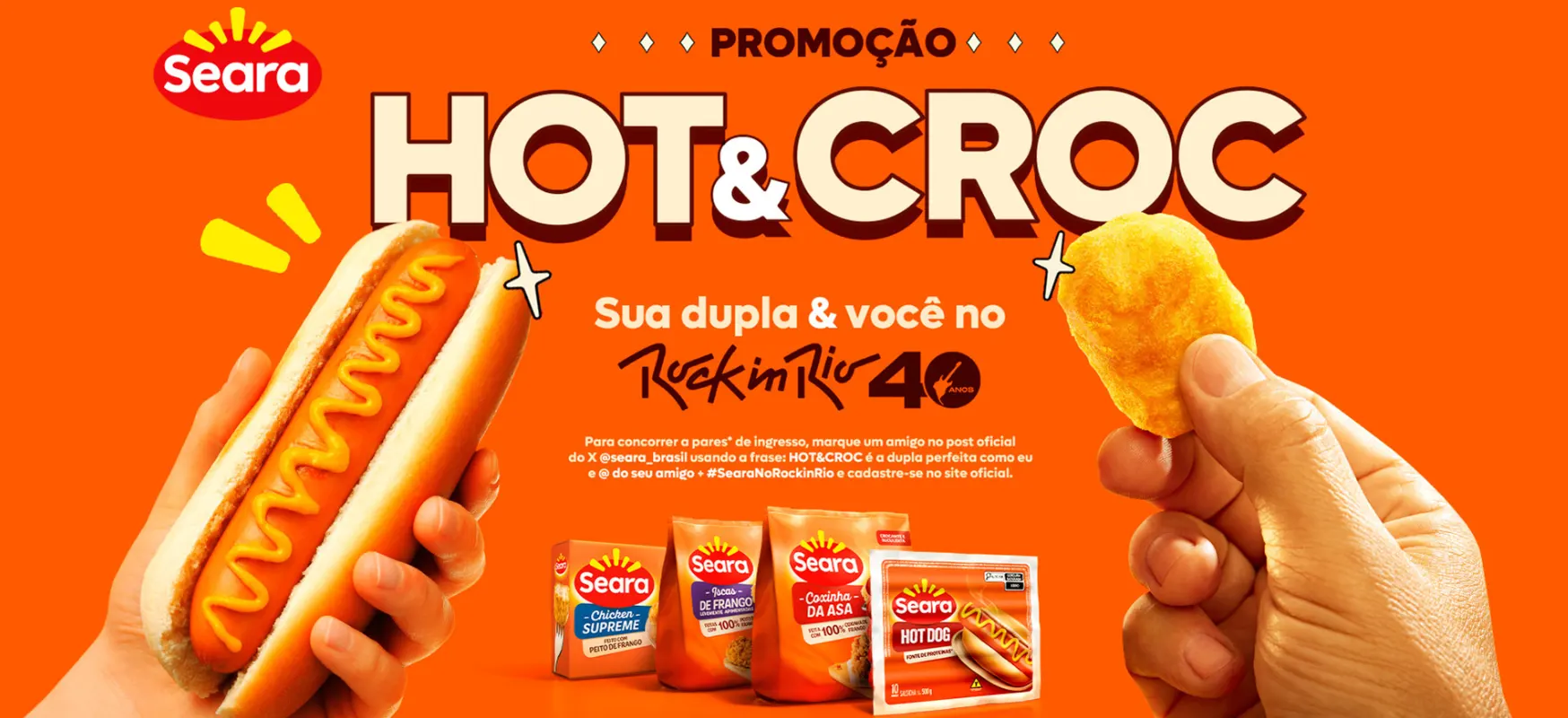 A Seara sorteia 5 pares de ingressos para o dia da sua preferência na promoção “Hot & Croc”. Além disso, os ganhadores poderão aproveitar um open bar e open food com os deliciosos cachorros-quentes e frangos crocantes da marca.