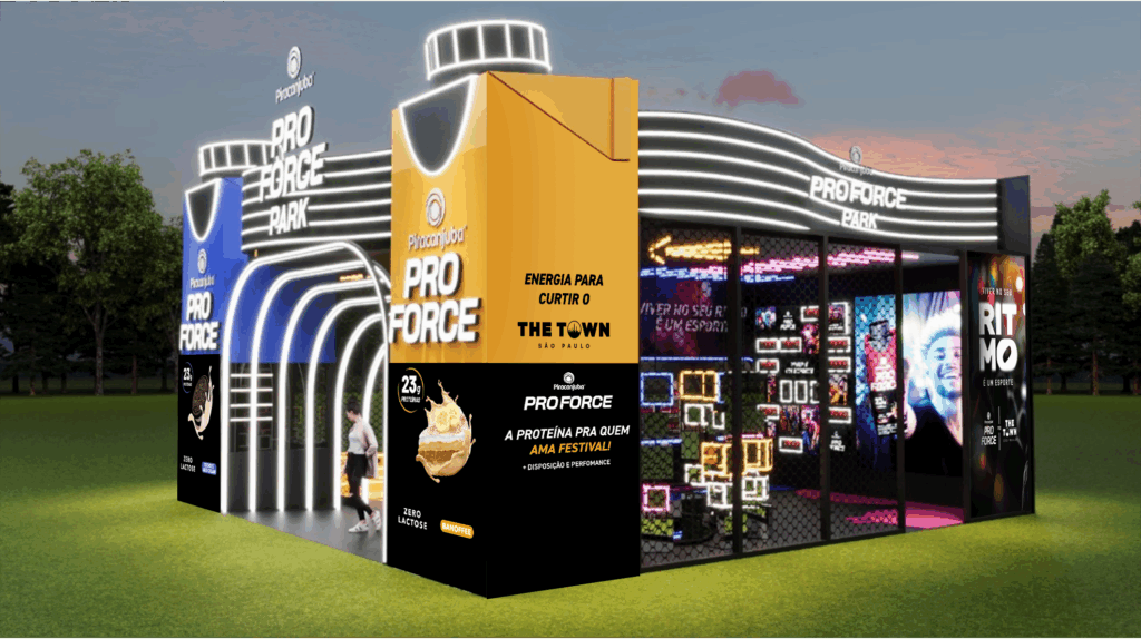 No The Town 2025, a Piracanjuba apresenta o ProForce Park, estande de 100 metros quadrados e seis metros de altura que combina música, esporte e experiências imersivas. O espaço terá cabine de DJ, brinquedo giratório com vídeos instantâneos para redes sociais, arquibancada para descanso e pontos de recarga de celular. Quem participar das dinâmicas poderá ganhar brindes como porta óculos e cordinhas personalizadas, além de aproveitar o bar com Piracanjuba ProForce em versões de 15g e 23g de proteína para manter a energia durante o festival. Confira vídeos da ativação aqui.