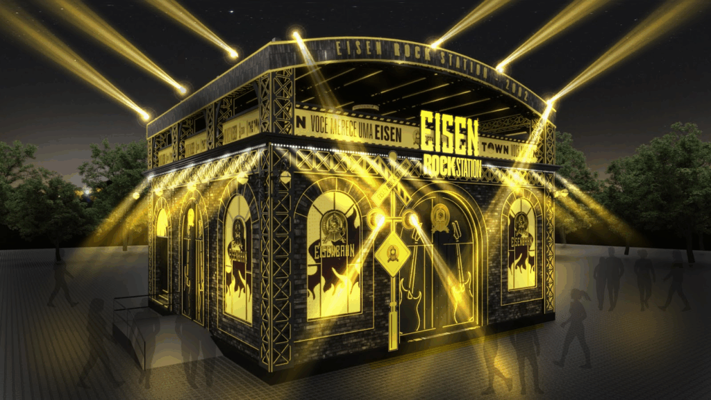A Eisenbahn estreia no The Town 2025 como cerveja oficial e patrocinadora master com uma programação grandiosa. O destaque é a Eisen Rock Station, estrutura de 225 metros quadrados e mais de dez metros de altura que leva o público a uma jornada imersiva pela história do rock, com direito a banda ao vivo e cenografia digital assinada pelo Bijari. A ativação funciona todos os dias, das 16h às 22h, em sessões de dez minutos para até 50 pessoas.